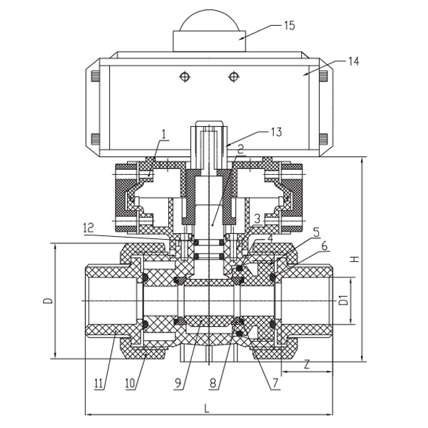 PVC-U Q661F-10U 氣動雙由任球閥 DN15-100國標